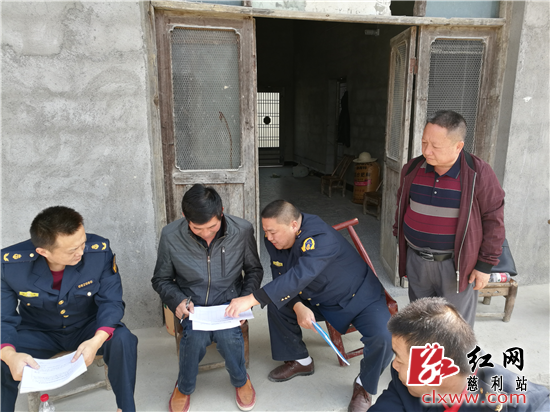 联合执法队对企业主发放政策文件和整改通知