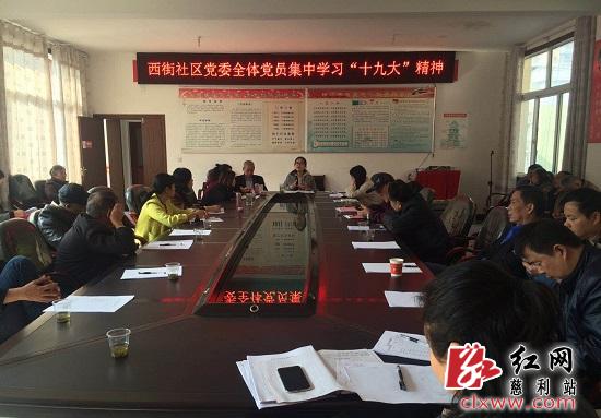 红网时刻11月9日讯(通讯员 余珂)为贯彻落实党的十九大精神,掀起学习十九大精神的热潮,今天上午9时,零阳镇西街社区召开了全体党员集中学习“十九大”精神会议。西街社区全体党委班子、党员参加了本次会议。