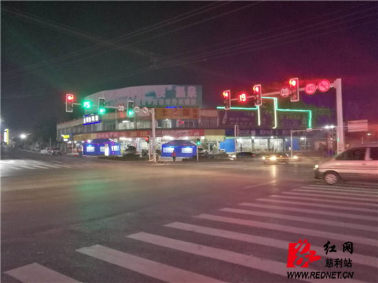 夜色下的江垭交通秩序井然