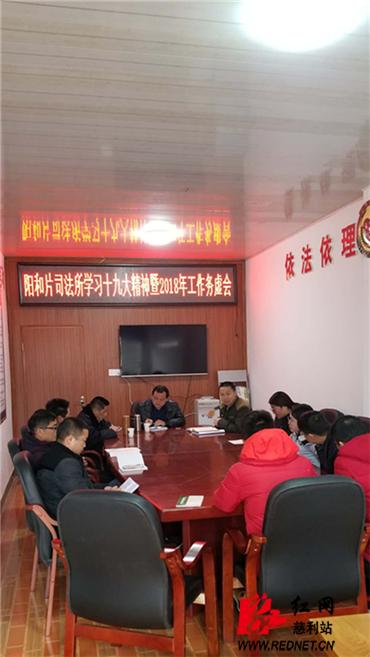 红网时刻12月31日讯( 通讯员 智军 仇向阳) 12月29日,阳和中心司法所联合该片区甘堰、溪口、金岩、许家坊司法所召开集中学习党的十九大精神暨2018年工作务虚会。
