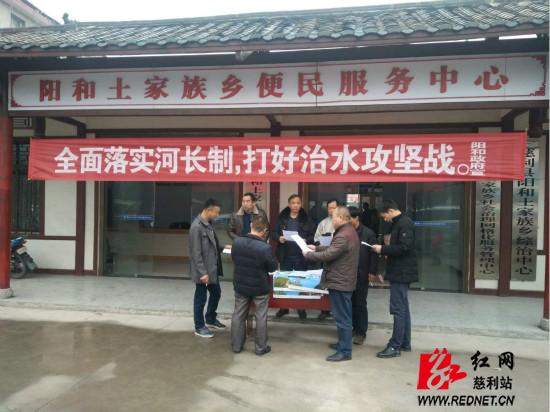 红网时刻12月31日讯(通讯员 何帆)12月30日,是阳和土家族乡的赶集日,一大早,乡河长办工作人员就在便民中心大门口设立咨询台开展“河长制”的宣传教育活动。