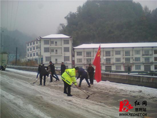 为了确保群众出行安全和道路交通畅通,乡政府发出紧急通知,要求政府干部及各村各部门迅速行动,统一调配分发雨衣、除雪铲、除雪耙等工具,组织干部职工、党员群众分别赶赴梨子坪隧道处、高速公路出口处、三叉路口处、街镇街道各重点积雪处、学校大门处清扫冰雪,并开通广播,通知全乡各村群众做好防寒、防滑、防摔、防砸、防撞工作。
