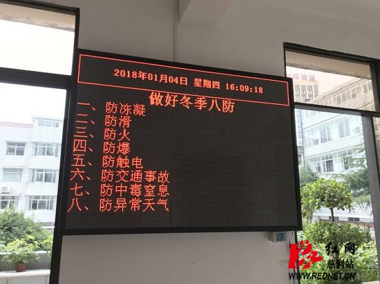 电子显示屏上显温暖——零阳镇善用电子显示屏,向大家普及了各种防范知识,如冬季八防:防冻凝、防滑、防火、防爆、防触电、防交通事故、防中毒窒息、防异常天气,小小的显示屏也如冬日的阳光般温暖着大家的心。