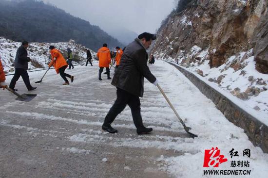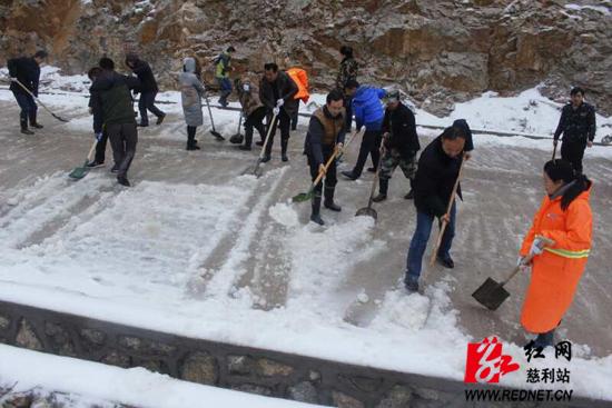 红网时刻1月5日讯(通讯员 黄岳云 朱柳燕)1月4日随着一股强劲寒流的骤降,慈利县降下新年第一场雪,随之而来的是给高寒山区群众出行带来诸多不便和安全隐患,为了确保山区群众安全出行,龙潭河镇党委书记带领该镇部分干部与二坊坪镇的干部来到雷雨垭高危路段,集体对此路段进行清此除冰块和积雪。