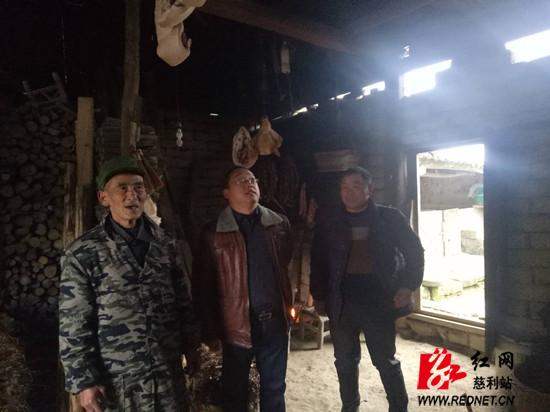 踏着积雪,慰问组来到二坊坪镇二坊坪村贫困户朱大金家中,实地查看住房、供电、取暖情况,查看大雪对生产生活的影响。鼓励贫困户要保持积极乐观的生活态度,如果生活上有任何困难都要第一时间反映,镇党委政府将及时给予帮助;并嘱咐他们勤劳才能致富,要靠自己的双手创造更多财富,早日脱贫摘帽,在奔小康的路上不掉队,希望他们的生活越过越好。