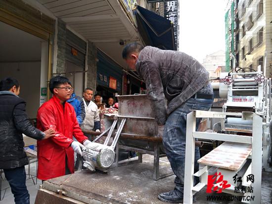 今年,慈利县按照张家界市相关文件精神,对城区8家私自生产销售生切面的个体经商户进行了宣传与动员,要求他们必须依法取得生产许可证才能生产销售。在慈利县食品药品工商质量监督管理局的指导下,生切面小作坊经营业主达成了联合投资办厂协议,并在慈利县工业集中区食品产业园建起了新的生产厂房,今天是他们喜搬“新家”的日子。