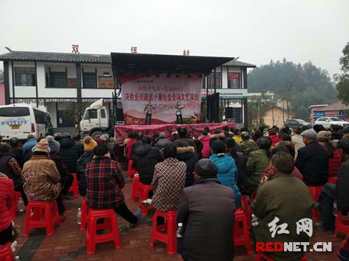 红网时刻慈利1月24日讯(通讯员 李秋香 朱桂蓉)为认真贯彻落实党的十九大精神,提升全县现代公共文化服务体系的服务效能,丰富农村文化生活,慈利县文体广新局组织慈利县瑞凝演艺传播有限公司和慈利县电影公司组成多个文化小分队,在“元旦春节”期间,根据群众文化需求的多样化,通过政府购买服务的方式,为各乡镇、村送戏下乡50余场,送电影200场。他们深入乡村、服务群众,通过创作推出一批人民群众喜闻乐见的高质量文化产品,开展一系列内容丰富、形式多样的文化活动,为广大农村和基层群众送去欢乐和文明,及时传递党的声音和关怀。