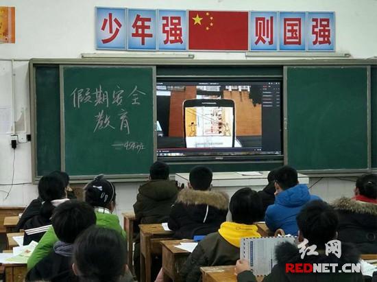 学校政教处召开了行政会、班主任工作会议,对寒假期间的安全教育进行专题部署。1月24日上午,全校学生在各自班主任的精心组织下利用“班班通”观看《护苗·网络安全课》动画短片视频,主题为“保护个人隐私”、“远离不良信息”、“防范网络诈骗”等网络安全热点问题,通过观看短片让学生学到了许多安全防范知识,积极引导学生文明上网、安全上网、健康上网。同时结合近段低温冷冻雨雪天气情况,班主任详细对学生进行假期交通安全、防冻、防火、防煤气中毒及防炸伤为主的系列安全教育,并向家长发放了“2018年零阳镇一鸣中学寒假安全告家长书”,要求家长认真履行监护人的职责和义务,引导孩子增强安全意识,提高学生安全防范能力。