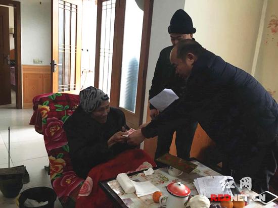 红网时刻慈利1月29日讯(通讯员 李艳 朱雪帆)1月27日,零阳镇跑马岗村村支两委冒着大雪,走访慰问低保户、困难优抚对象、孤寡老人等困难群众。