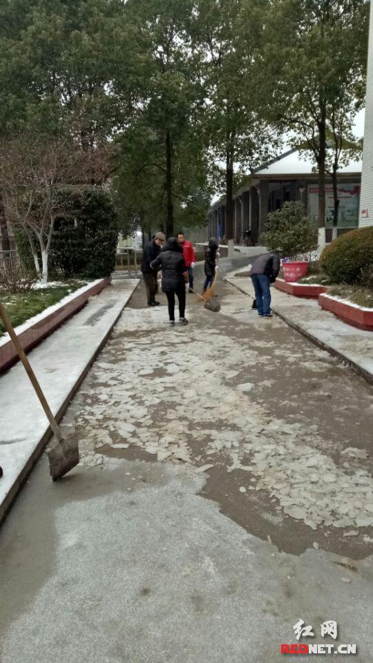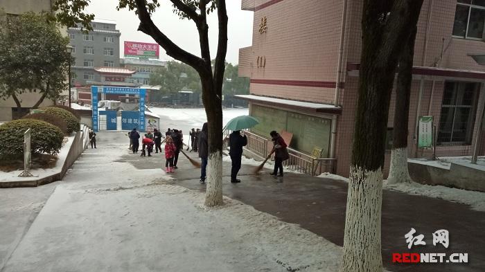 红网时刻慈利1月29日讯(通讯员 杨红玉) 银装素裹,分外妖娆。给人惊喜的同时,也给安全出行带来极大不便。 1月27日,在慈利二中校道上,只看到一群忙碌的身影,原来是学校组织相关人员在铲雪扫雪。