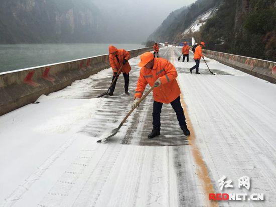 在冰雪中奋战的公路人