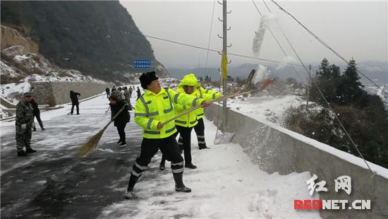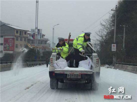 慈利县公安局交警大队及时启动应急预案,放弃双休全警上路,对辖区重点路段、桥梁、事故多发点实行管控,切实做好冰冻天气应急处理工作,全力预防重大道路交通事故和长时间、长距离交通拥堵,保障道路安全畅通。