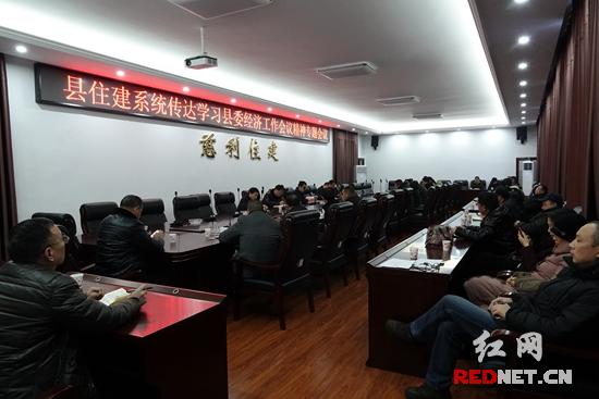 红网时刻慈利1月29日讯(通讯员 彭罗益 )为认真传达学习县委经济工作会议精神,慈利县住建局继1月23日召开局党组会传达县委经济工作会议精神后,1月29日上午,又组织全体干部职工和局属各单位主要负责人,专题传达学习2018年县委经济工作会议精神,安排部署2018年各项工作。