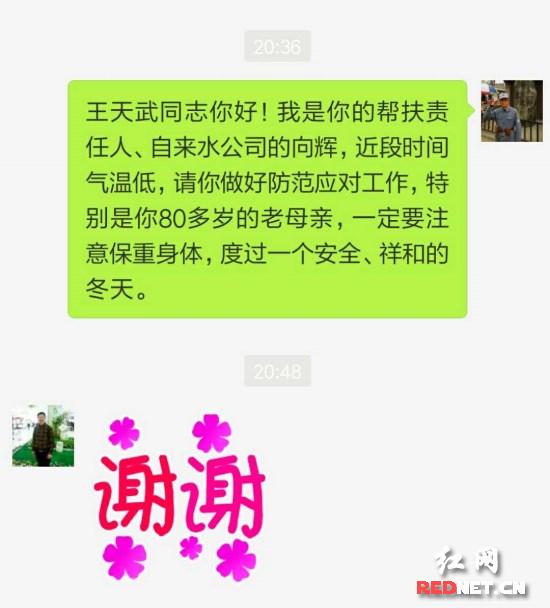 图为自来水公司帮扶人和帮扶对象的防寒微信交流
