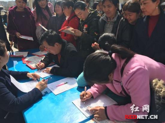 各乡镇党委、政府也高度重视,在本次组织宣传发动中充分发挥了主力军作用,大部分乡镇都是由镇党委政府书记、镇长亲自带领务工人员前来应聘。其中,3月10日龙潭河向书记、彭镇长和各村支两委带队务工人员不仅年龄合格率高,还陪同务工人员进车间参观,宣传园区好的环境、发展前景,宣讲到本地就业的好处、宣讲在家乡工作建设家乡的自豪感,并陪同务工人员在企业餐厅吃午饭讲积极的就业思想,引导务工人员到企业就业,40人的队伍当场签约35人,得到了企业的称赞;高峰乡王乡长带队78人(其中建档立卡贫困劳动力41人)和15名村干部一起实地考察参观企业车间后,30名务工人员纷纷填写入职登记、签订用工协议,办理了进厂相关手续。企业对于建档立卡贫困劳动力在聘用时也适当放宽条件,阳和乡的建档立卡贫困劳动力杨浇身体残疾,因为年轻肯学,金福凯盛鞋业破例招为保安,有机会进车间学习他能做的工作技能,小伙子挺开心。