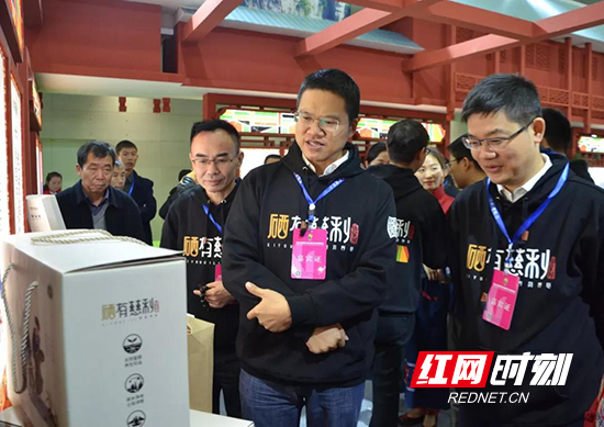 2017年11月18日,在中国中部(湖南)农博会上,高靖生一行查看“硒有慈利”展馆