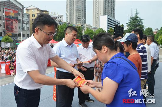 红网时刻慈利6月9日讯(记者 王馨翊)为在全社会进一步营造扶贫济困、合力攻坚的浓厚氛围,整合社会资源、凝聚社会力量,以实际行动助力全镇脱贫攻坚工作,6月9日上午,零阳镇精准扶贫爱心帮扶活动在县人民广场举行。