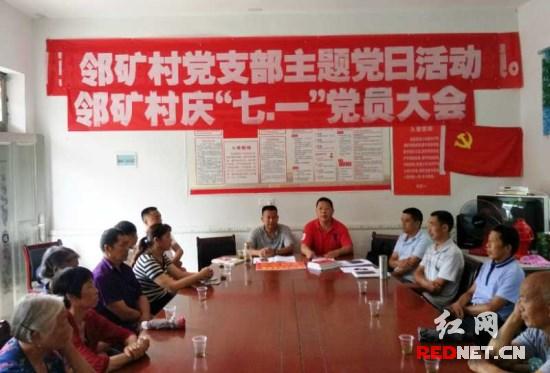 “今天是个特殊的日子,我们以这样一种方式庆祝党的生日,心里感到特别的激动……”县自来水公司党支部委员、副经理,驻邻矿村帮扶工作队长龚国敬拉开了讲党课的序幕。他从中国建党历史到慈利建党历史,再到邻矿村的党建工作,用详实的事例,生动的语言,给党员上了一堂感人的党课。“这堂党课对我启发很深,它提升了我干事创业的责任感和使命感”,年轻党员、村委委员杨妮平如是说。“唱支山歌给党听,我把党来比母亲……”县自来水公司驻村帮扶工作队员、村党支部第一书记朱正辉用手机把动听的歌曲放给党员听,听着听着有的党员眼眶湿润了。“没有共产党就没有新中国,我能有如今幸福的晚年生活,要感谢共产党..….”有着60年党龄的86岁老党员杨万明心中感慨万千。