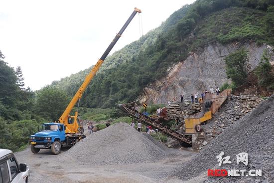 现场拆除非法采石碎石机械设备