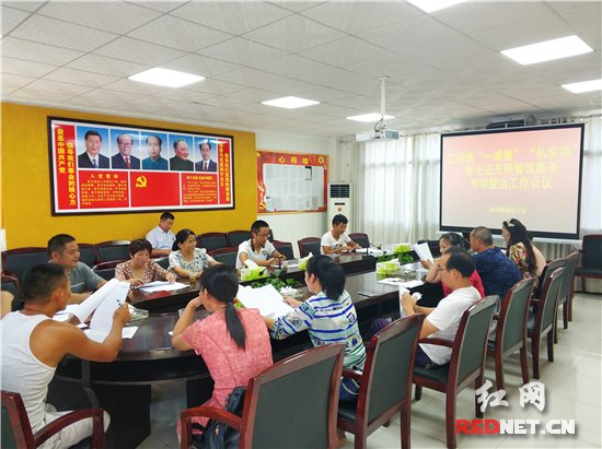 红网时刻慈利8月21日讯(通讯员 王凯锐)8月21日,江垭镇召开“一桌餐”“私房菜”等无证无照餐饮服务专项整治工作会议,行动所涉及的13个村居及相关职能部门负责人参会。