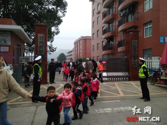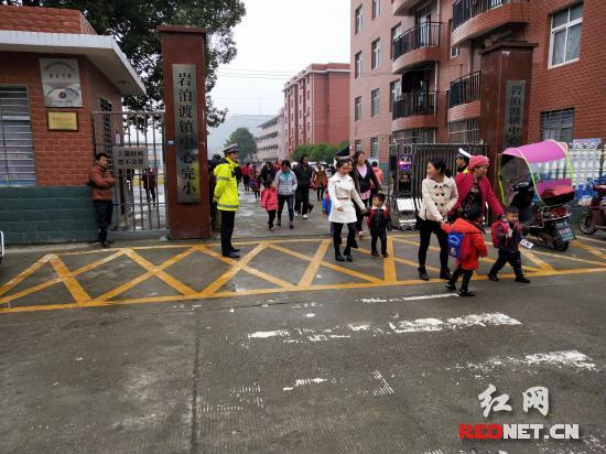 据悉,该学校位于集镇老十字街,流动摊点多,人员密集,每逢学生放学,接送孩子的家长聚集在街道旁,人车混杂,加之门前道路改造,师生交通安全存在隐患。根据学校道路交通状况,该镇党委政府牵头组织交警中队每天安排两名交警,在学校门口设立固定“护学岗”,加强校门前道路交通指挥疏导。同时,针对乱停乱放、乱搭乱建、流动摊点等突出违法违规行为,联合镇相关职能部门部门开展大检查大整治,增设道路交通安全标识标志,彻底消除校园周边道路交通安全隐患。