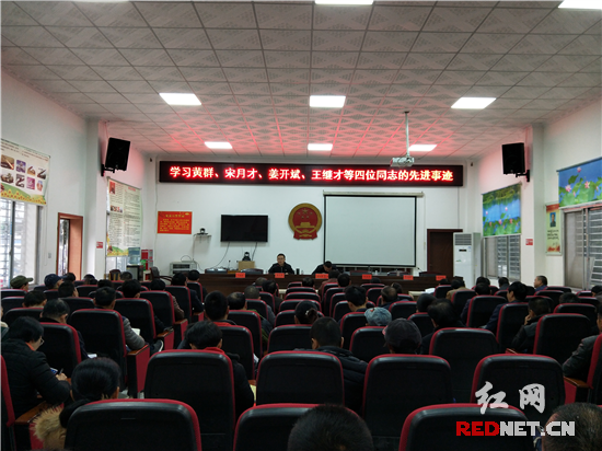 红网时刻慈利11月19日讯(通讯员 杨锋)为深入学习贯彻习近平总书记重要指示精神,大力宣传信念坚定、对党忠诚、担当作为、干事创业的新时代典型,激励和引导广大党员干部进一步把思想和行动统一到习近平新时代中国特色社会主义思想和党的十九大精神上来,近日,江垭镇党委政府组织村(居)两委干部和全体政府干部职工学习黄群、宋月才、姜开斌、王继才4位同志的先进事迹。
