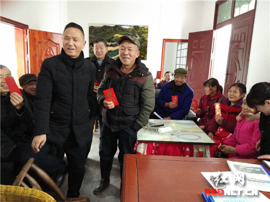红网时刻慈利1月15日讯(通讯员 唐纯姣)1月15日,江垭镇长峪村引进的龙头企业溇江农业开发有限公司结合当月“一学三讲三帮三扶”迎新春暖民心活动,对长峪村最为困难的13户贫困户进行节前走访慰问,在送去米、油等物资及慰问金。
