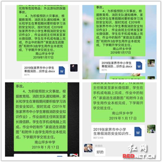 加强火灾预防工作。根据教育局、消防支队通知精神,学校要求家长和学生在寒假期间积极学习消防安全知识,按时完成《2019年张家界市中小学生寒假消防安全知识作业》,作业由班主任转发至家长微信群,学生在手机或电脑上完成,作业中的制作“家庭逃生疏散图”和附件3由学生用作业本纸完成,下学期开学交班主任。
