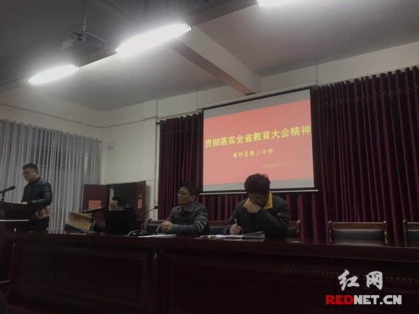 红网时刻慈利1月18日讯(通讯员 李军)1月14日,慈利县第三中学组织全体教师认真学习了全省教育大会精神。