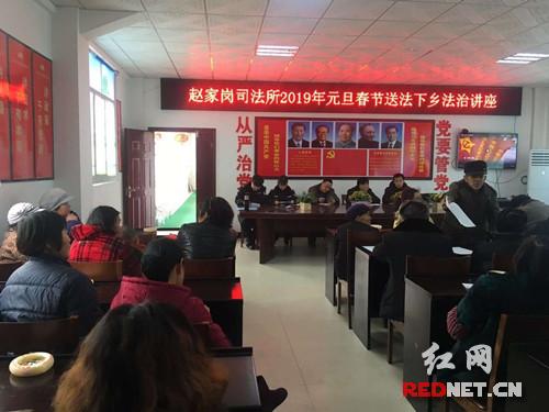 红网时刻慈利1月21日讯(通讯员 龙伟)1月21日,赵家岗司法所在赵家岗土家族乡长安村开展“送法下乡”法治讲座,使法律知识真正走进农村、走进基层,不断提高广大农民群众的知法、懂法、守法、用法的法治意识。
