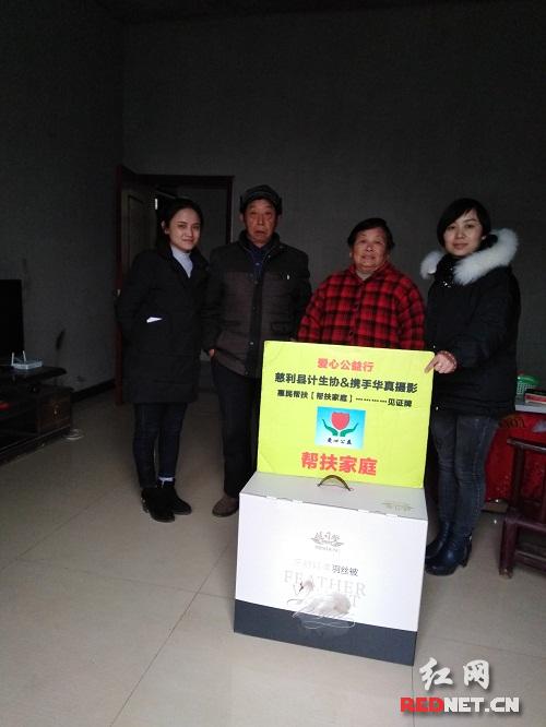 红网时刻慈利1月21讯(通讯员 于璐)新春佳节即将来临,为进一步加强对计划生育特殊困难家庭的帮扶力度,让他们感受到党和政府的温暖,使计划生育家庭过一个欢乐、详和的新年。1月20日,慈利县计生协携手华真摄影负责人来到铜台居委会开展“安心公益行”活动,走访慰问特扶家庭。