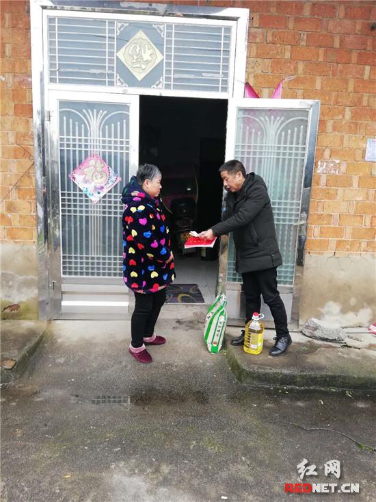 一大早,扶贫干部们带着米、油、等物资来到贫困户家中, 每到一户嘘寒问暖,与帮扶对象“面对面”接触,“心连心”交流,详细了解、询问贫困村民的家庭生活状况和面临的实际困难。在走访卧病在床的贫困户杨光明家时,水利站副站长何政自掏腰包送上300元慰问金, 并叮嘱他们保重身体,早日康复,鼓励他们勇于战胜困难,积极乐观面对生活,树立自力更生、脱贫致富的信心,争取早日脱贫,早日走上致富之路。