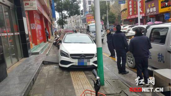 执法人员巡查至环城南路时,发现有机动车违停在人行道上,并占据了摩托车车位。在紫霞路,有1辆机动车和部分摩托车占据了人行道,并将盲道完全挡住。执法人员现场拍照取证后,对乱停靠车辆张贴温馨提示单。对违停摩托车进行了拖离,对违停机动车实施了锁车措施。当天上午,共拖离摩托车6辆,锁车21辆。