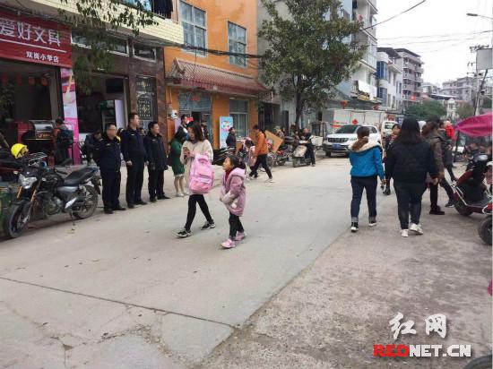 执法人员在双岗小学进行巡查执勤