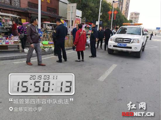 执法人员对金慈小学周边流动摊贩进行规范劝导