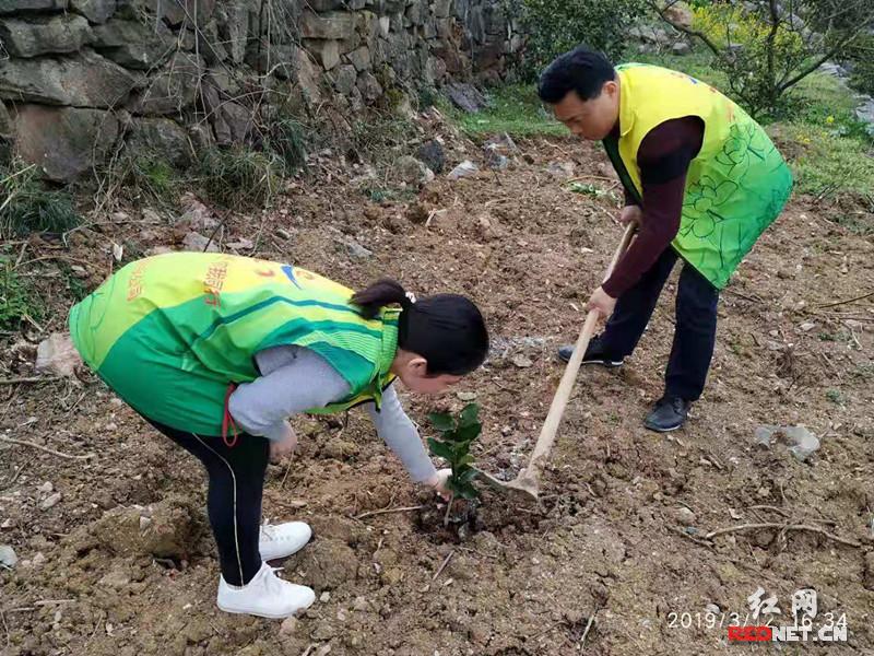 红网时刻慈利3月13日讯(通讯员 王莉)3月12日,我国迎来了第41个植树节,为“争做文明志愿者、携手共创文明城市”,零阳镇紫霞社区所有班子成员在党委书记的带领下来到了海军湾,开展义务植树活动。