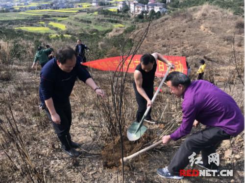 红网时刻慈利3月18日讯(通讯员 何祖庆 朱方俊)艳阳久别,重逢暖春。趁着当下好春光,3月15日,零溪镇党委政府组织全镇各单位干部职工近百人来到位该镇岩桥村植树基地开展义务植树活动。