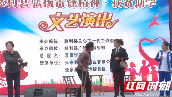 红网时刻慈利3月26日讯(记者 黄莉莉)3月23日,由县关心下一代工作委员会主办的一场主题为“弘扬雷锋精神”扶贫助学文艺演出活动在人民广场精彩举行。