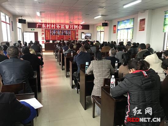 3月26日,东岳观镇广东村一百多人齐聚新村部,正在召开全镇第一场村务监督月例会,除了本村的村支两委干部、村务监督委员会成员、工程理事会成员和60名群众代表,全镇其余15个村(居)支部书记、村主任、报账员、监督委员会主任均到场学习观摩和交流。