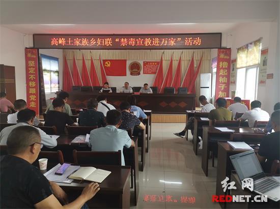 6月25日上午,在活动启动会上,高峰土家族乡妇联主席代表乡妇联发出号召,号召各村妇联主席、全乡妇女群众行动起来,持续性开展禁毒宣传教育进千家万户活动,广泛传播健康人生、绿色无毒理念,利用多种宣传形式和宣传渠道掀起禁毒高潮,增强妇女和家庭禁毒意识和抵制毒品能力。这次活动,打响了高峰土家族乡全民禁毒保卫战的第一枪,促进禁毒工作的全面胜利,建设和谐幸福高峰。