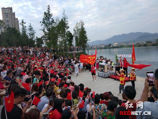 红网时刻慈利7月2日(通讯员:朱桂蓉)红旗迎风飘扬,台上激情四射,台下热情高涨。7月1日,夜幕降临之际,零阳镇紫霞社区在放马洲公园开展了庆“七•一”专场演唱活动,《走进新时代》《没有共产党就没有新中国》《我爱你中国》《唱支山歌给党听》等共演唱了歌曲16首,时间长达2个多小时,为庆祝建党98周年唱出群众心中的歌。个人演唱慷慨激昂,台下观众掌声连连,集体合唱振奋人心,一首齐唱《没有共产党就没有新中国》把现场气氛推向高潮,唱出了全场千余观众的心声。