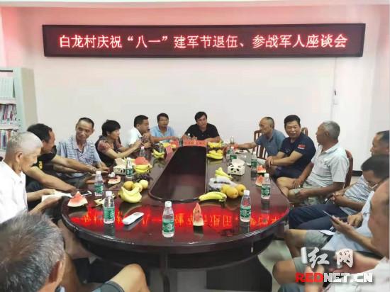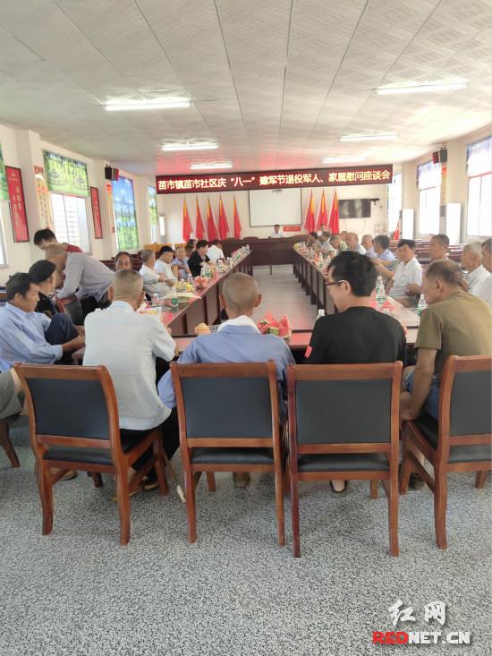 在苗市居委会,村两委把村上的退伍老兵接到村部,让他们欢聚一堂,为他们举办了一次特别的座谈会,听听他们的往昔岁月,听听他们的丰厚阅历,听听他们对村里今后发展的建议。
