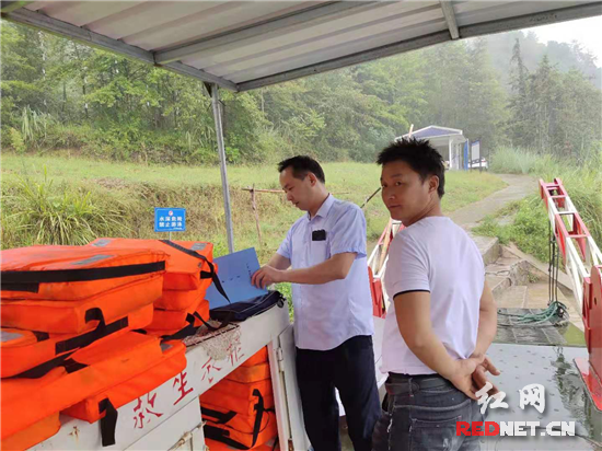 红网时刻慈利8月28日讯(通讯员 黎锦涛)针对近期持续降雨,为切实加强渡口渡船安全监管工作,确保渡运安全,8月28日上午,杉木桥镇安监站工作人员冒雨对该镇栗山村狮子渡口渡船进行了全面检查。