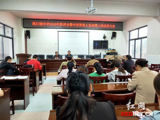 红网时刻慈利10月23日讯(通讯员 高双艳)为推进本校职称评审及竞聘上岗工作有序开展,10月21日-22日下午,溪口镇中学分别在中、小学召开2019年度职评会暨中层管理人员竞聘上岗动员大会。