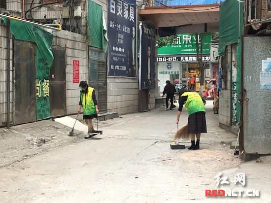 社区党员干部及志愿者们每天分组行动,他们走向街头,走进巷尾,用实际行动为创文代言。有的来到路口维持交通秩序,确保行人安全通过马路、车辆规范整齐停放,保证道路通畅有序;有的走进街巷清理环境卫生,他们捡烟头、拾果皮纸屑,清理线杆及墙面“牛皮癣”,劝告居民不乱扔乱吐,力争让每一户居民“门前清”,让每一处卫生死角干净整洁。