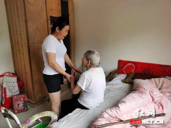 红网时刻慈利6月16日讯(通讯员 袁羽婷)天微微亮,阳和土家族乡夹石易地扶贫搬迁集中安置点百岁老人王任妹家中就穿梭着一个忙碌的身影。阳光透过窗户洒进屋内,于新梅将热腾腾的早饭送到王任妹老人手中,随后,又开始忙着铺床叠被、打扫房间、给老人擦身洗脚,这样的暖心的场景每天都在这里发生着。