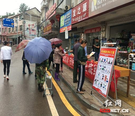 红网时刻慈利6月22日讯(通讯员 彭辉宇)为落实全国第19个安全生产月活动宣传工作,切实加强辖区群众的安全意识和安全防范能力。近期,东岳观镇安监站联合农业综合中心、交管站、交警队在集镇开展安全生产月宣传活动。