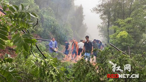 当日上午,该乡政府主要领导和应急办的同志巡查时,目睹云水公路湖南泉村境出现山体滑坡、树木横挡公路,导致交通阻塞。对此,调动湖南泉村和云山村党员干部抢险,云山村14名应急救援队员第一时间赶到现场,锯树移木、搬石清路、清沟排水,仅20分钟时间完成抢险,恢复正常通行。