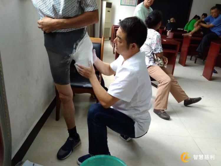取型制模过程中,技术人员精心为每名截肢患者进行科学和有针对性地取模,逐一对残疾人的残肢进行仔细检查,详细询问每个残疾人的身体状况,并向残疾人耐心讲解假肢佩戴和日常维护相关知识。
