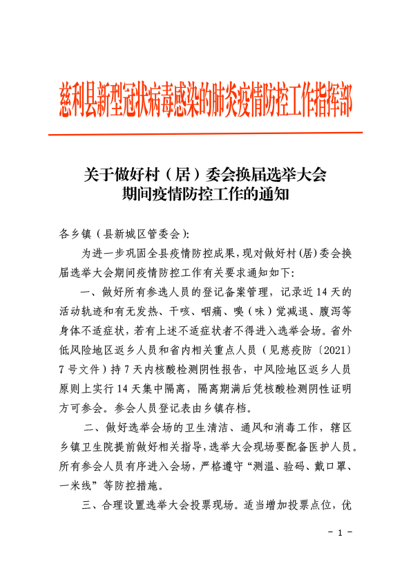 关于做好村(居)委会换届选举大会期间疫情防控工作的通知
